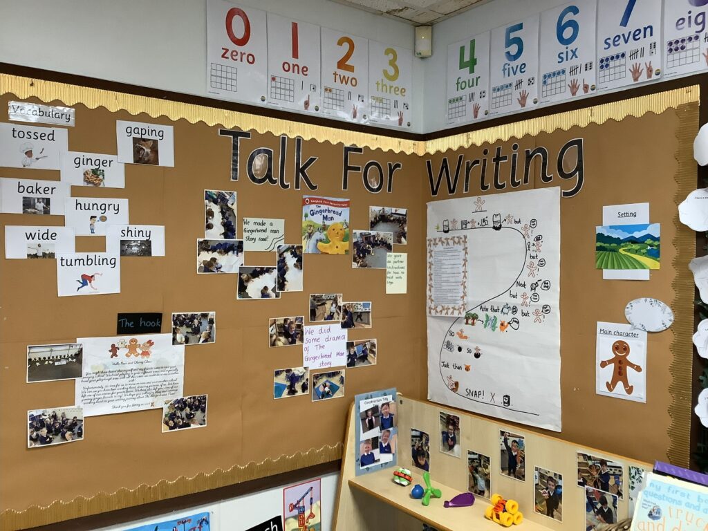 To promote a rich and varied vocabulary, we provide a language rich environment, which gives opportunities for children to experience new and imaginative vocabulary. We plan specific activities to upscale the children’s vocabulary which is illustrated through our daily phonics teaching (ELS) Talk for Writing, book sharing, role-play, child initiated activities and when using the outdoor area. To further deepen the understanding of children’s learning, staff in the Foundation Stage are encouraged to use questioning to allow children to talk about their experiences. The use of questioning also encourages children to use a wider range of vocabulary to form longer, more complex sentences.